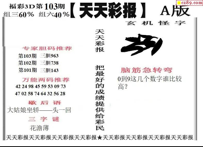 > 福彩3D2026103期天天彩报A版 天天彩报B版