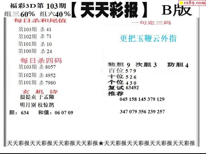 福彩3D2026103期天天彩报A版 天天彩报B版